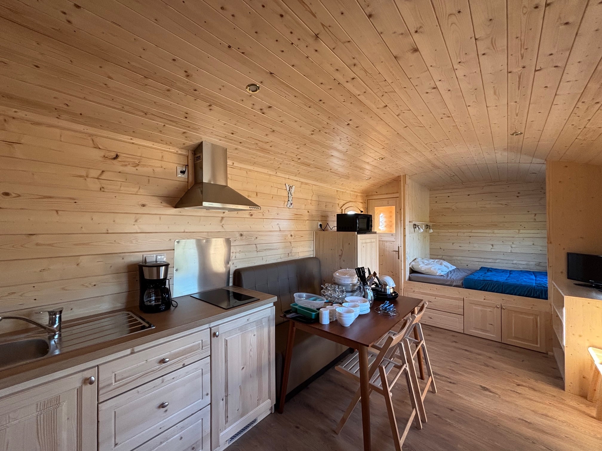 Bienvenue au Lodge de l’Horizon, une expérience d’hébergement insolite nichée au cœur de notre camping, conçu pour accueillir jusqu’à 4 personnes. Cet hébergement unique vous offre une escapade romantique et idyllique en parfaite harmonie avec la nature environnante.